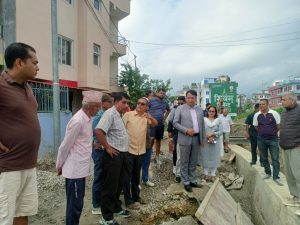 भक्तपुर । सूर्यविनायक नगरपालिका–५ कटुञ्जेस्थित गडेधारा टोलअवस्थित रहेको स्थानीय ढुङ्ग्रेखोलामा बनिरहेको करिडोर बागमती प्रदेशका स्वास्थ्यमन्त्री किरण थापा, सूर्यविनायक नगरपालिकाका वडा नं. ५ का वडाध्यक्ष राजकुमार जोशी, समाजसेवी अनिता पाण्डे र वडा सदस्यहरुको टोलीसहितले अनुगमन गर्नुभएको छ । मन्त्री थापाले बनिरहेको करिडोरका निमित्त बागमती प्रदेश सरकारले एक करोड ५० लाख छुटाइएको जानकारी दिनुभएको छ ।