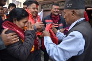 यो त उहाहरण मात्रै हो । बिहानको तीन घण्टाको घरदैलोमा ठाउँठाउँमा उभिएका स्थानीयले राती टीका, माला, खादाले स्वागत मात्रै गरेनन्, दशीकाृ सगुन खुवाएर विजयीका शुआर्शिवादसमेत दिए ।